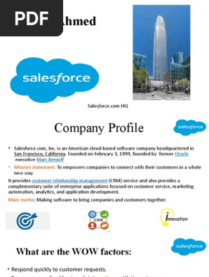The Mission Statement of Salesforce is to make people more productive. Salesforce works by helping their customers transform their business with its customer relationship management software. For Chief Content Officer Ian Faison the company mission and the way the company pursues it are one and the same. Capabilities that guide essential conversations and decisions right where people work. The Mission Statement of Salesforce is to make people more productive. We help unite every department to better focus on customers with Customer 360 the worlds 1 CRM. Salesforce is the worlds 1 customer relationship management CRM platform.